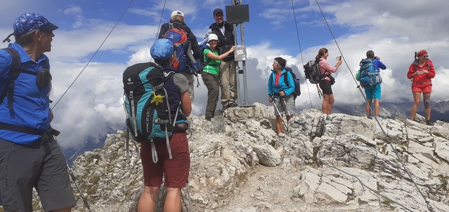 An der Talstation der Bergbahnen in Seefeld erklärte der erfahrene Tourenführer Helmut Kaumeier die vorgesehene Route zur Nördlinger Hütte, der höchstgelegenen Schutzhütte im Karwendel. Da alle Teilnehmer aktive Läuferinnen und Läufer waren ging Kaumeier davon aus, das die etwas längere und anspruchsvollere Strecke bewältigt wird. Er verglich die Strecke mit einem Marathon, den einige damit zum ersten Mal vor sich hatten und später auch geschafft haben. Der fast 5-stündige Aufstieg führte in gemächlichem Tempo über eine Skipiste, vorbei an der Rosshütte zum ersten Gipfelkreuz am Seefelder Joch auf 2074 m. Von da aus konnte man schon das Gipfelkreuz des nächsten Zwischenziel, der Seefelder Spitze auf 2221 m sehen. Der Karwendelhöhenweg führte weiter über einen Krat und quer über einen Felshang zur letzten Rast vor dem schwersten alpinen Aufstieg zur Reither Spitze auf 2374 m. Zur Erleichterung waren Stahlseile und sogar eine Leiter fest montiert. Am höchsten Punkt der Tour angekommen war das Gipfelfoto und der Eintrag ins Gipfelbuch pflicht. Kaum wurde der Gipfel verlassen war auch der Sonnenschein weg und Wolken umhülltern das Kreuz und das Ziel, die "Nördlinger Hütte" auf 2238 m. Wenn Engel reisen lässt die Sonne jedoch nicht lange auf sich warten und kam auf die Terrasse der Hütte bei der ersten wohlverdienten Stärkung zurück.
