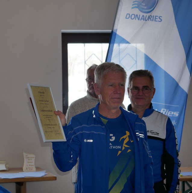 Im Anschluss nahm Martin Gnad die Ehrung der besonders treuen Teilnehmer für 150 (Karl Niedermeier), 125 (Manfred Hainz und Erich Kirchmeyer) und 100 (Tobias Steige) Läufe vor. Großen Beifall erhielt Arnold Fischer vom TSV Wemding mit nun 175 Läufen innerhalb der Serie.