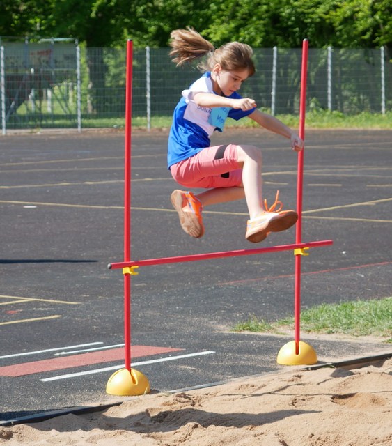 Dabei sind die Disziplinen - z.B. Fünfsprung als Vorbereitung für den Dreisprung der Erwachsenenklasse oder der Hindernis-Sprintstaffel als Vorbereitung für den späteren Hürdensprint- technisch und koordinativ bei weitem herausfordernder als die klassischen Disziplinen in der Altersklasse.