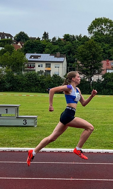 Auch Amelie Geib erzielte persönliche Bestleistungen mit 16,24s über 80m Hürden und 14,89s über 100m. Mit 3,86 Meter im Weitsprung, 16 Meter im Ballwurf und 9:27,37 Minuten über die 2000 Meter erreichte sie eine Gesamtpunktzahl von 1.771. Julia Walter ( 15,20s/80mHürden und 14,90/100 Meter) lieferte sich einen Zweikampf mit Amelie im Weitsprung und erzielte letztendlich eine Weite von 3,87m. Durch einen hervorragenden Ballwurf (30,50m) und einen schnelleren 2000m-Lauf ( 8:41,10min) erreichte sie eine Gesamtpunktzahl von 2.021.