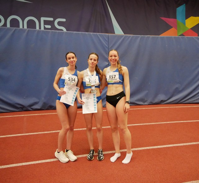 Ebenfalls über neue Bestzeiten konnte sich Teresa Siebachmeyer freuen. Sie absolvierte in der Altersklasse U18 am ganzen Wochenende ihr mittlerweile festes Standardprogramm. Am Samstag standen die 60m Sprints an. Hier erzielte sie im Vorlauf eine Bestzeit von 8,03s, die sie dann im B-Finale noch auf 8,02 s verbessern konnte. Noch besser lief es dann am Sonntag beim 200m-Sprint. Hier konnte Teresa die Hallenrunde in 26,12s sprinten und sich damit einen fünften Platz in einem starken Teilnehmerfeld sichern.
