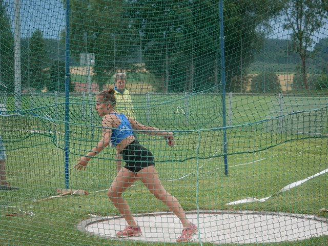 Horgau Die SpVgg Auerbach/Streitheim trug erneut Kreismeisterschaften in Horgau aus, diesmal die Altersklasse U18 bis zu den Erwachsenen. Bei brütender Hitze begannen mittags die Wettkämpfe für die Kugelstoßer. Hier starteten) Karola Wollner (Frauen) und Magdalena Fischer (wU18).