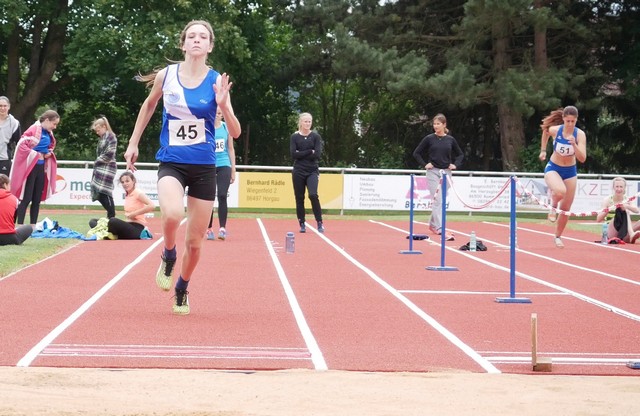 Auffälligste Athletin vom TSV Nördlingen war am Sonntag sicherlich die 14-jährige Floriane Freihart, dit mit einer überragenden Zeit von 13,14 Sekunden den 100m-Lauf und im Anschluss danach auch das 80m-Hürden-Rennen gewann.