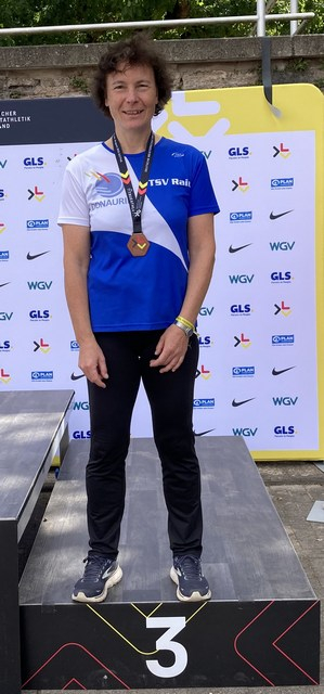 Nach der weiten Anreise startete für Karola am Samstag der Wettkampf mit dem Kugelstoßen. Hier landete die 3 Kilogramm schwere Kugel mit 11,14 Metern knapp unter ihrer Bestleistung und Karola konnte sich überraschend über den Bronzerang freuen.
